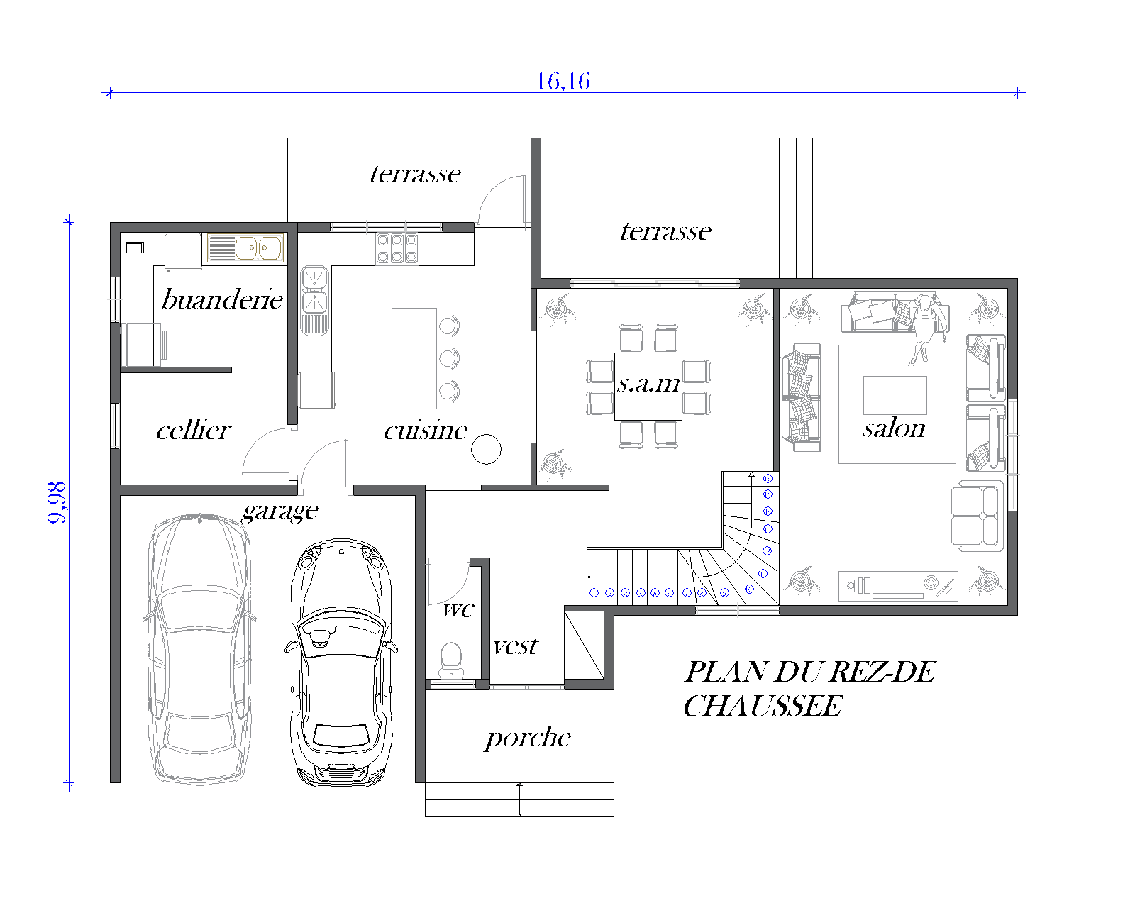 01 Cuisine ouverte avec Cellier et Buanderie